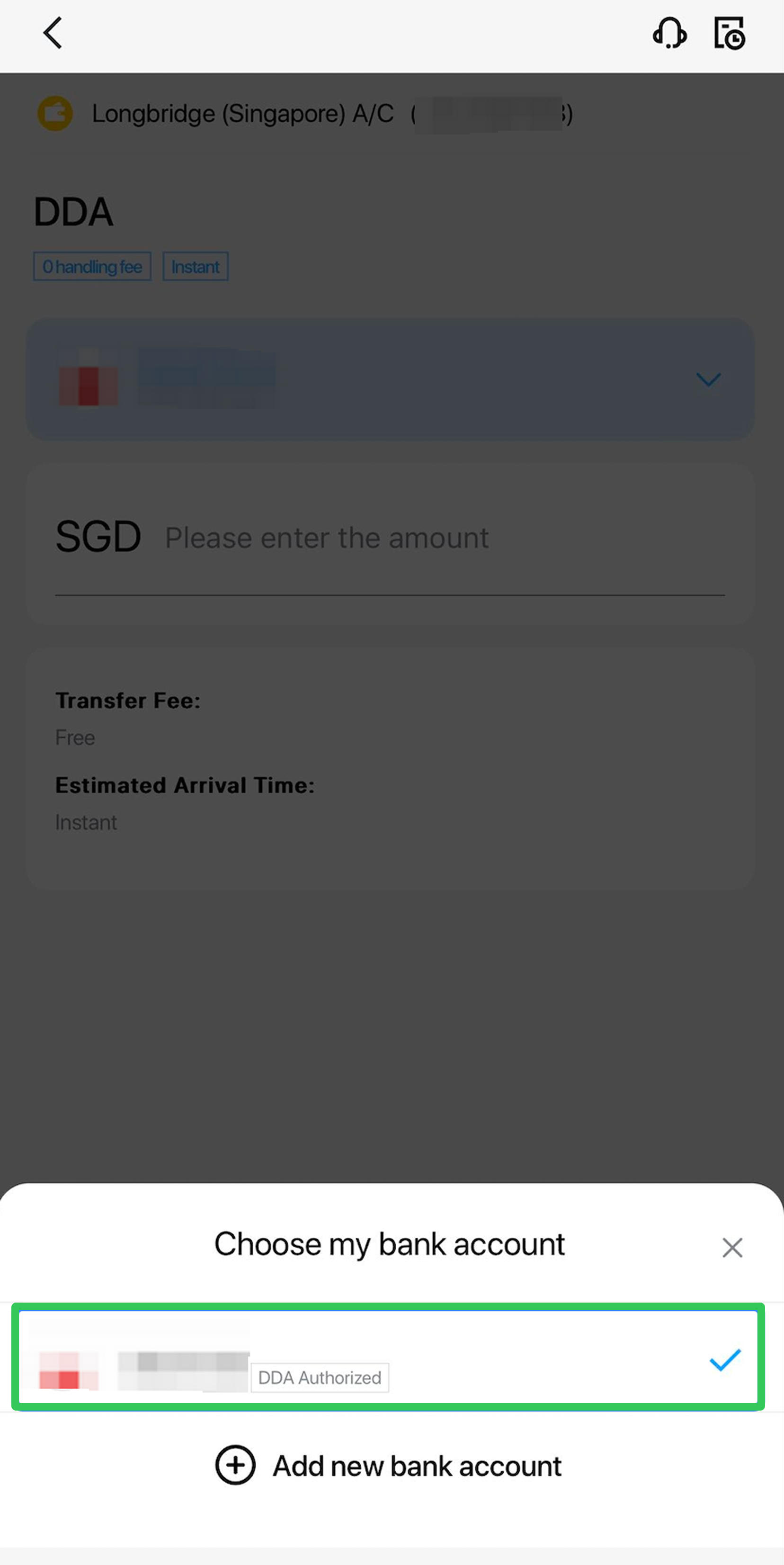 Once you have linked your bank account to Long Bridge Securities Pte. Ltd., you can initiate SGD deposits directly from your Longbridge App. The money will be debited from your bank account and then credited to your account with Long Bridge Securities Pte. Ltd.