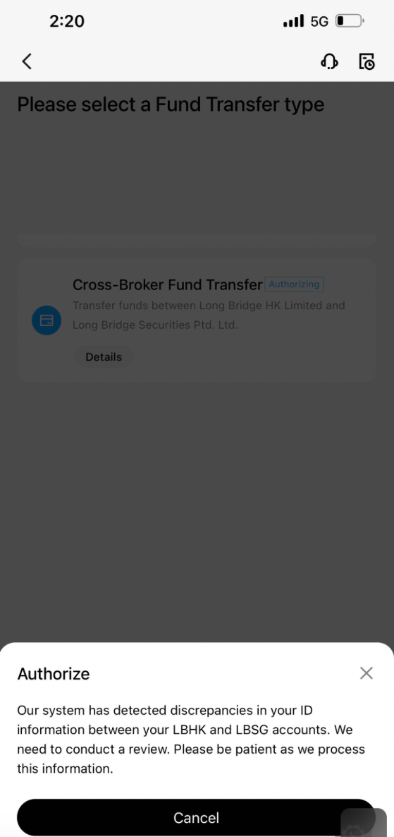 For example, if the authorization application you’ve initiated via Longbridge Securities (Hong Kong) is rejected, you can only add more information or cancel the authorization through your Hong Kong account. Your Singapore account will only display the authorization status.