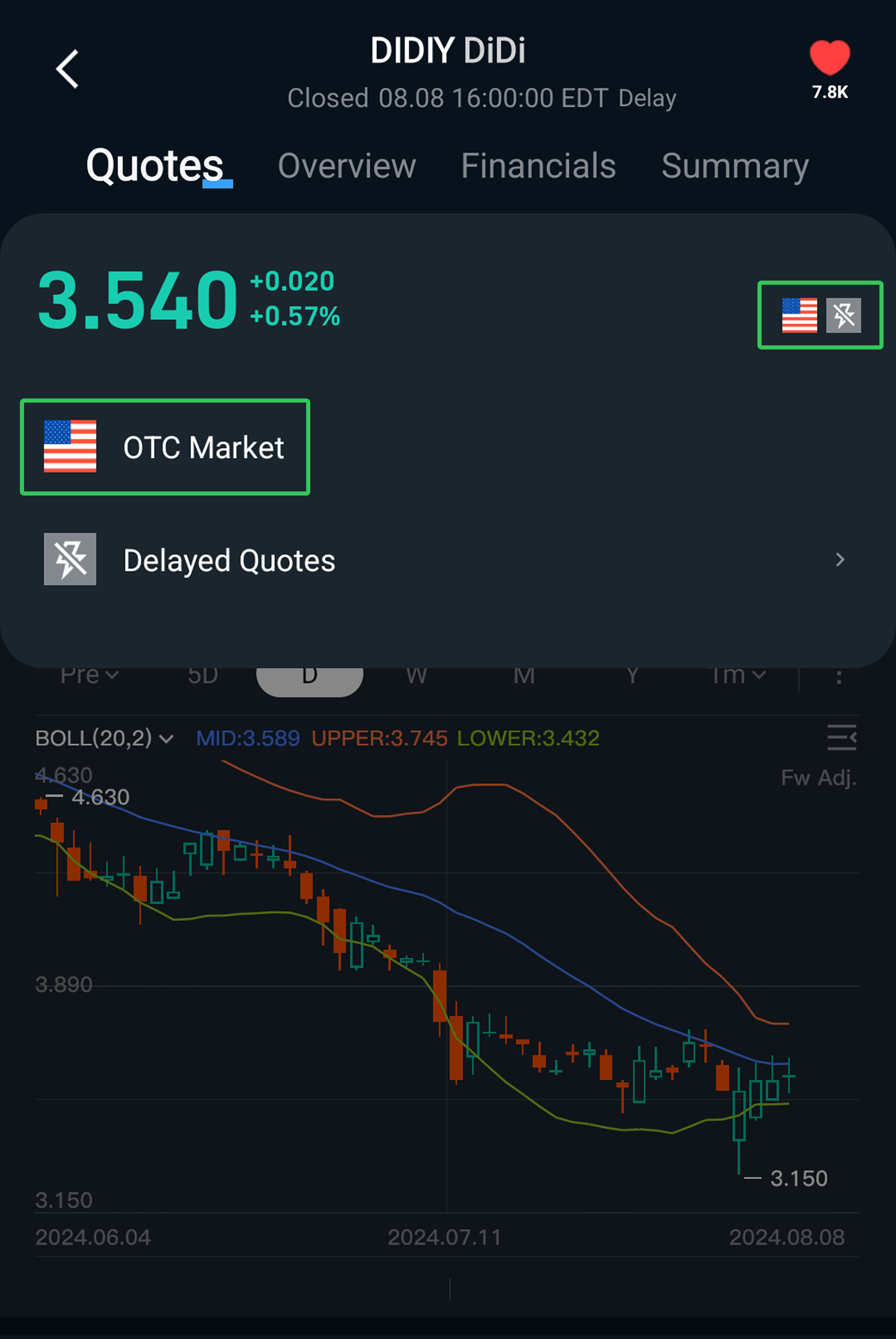 To view OTC stocks, follow these steps in the Longbridge App: Navigate to "Market" -> Tap the magnifying glass icon -> Enter the OTC stock symbol